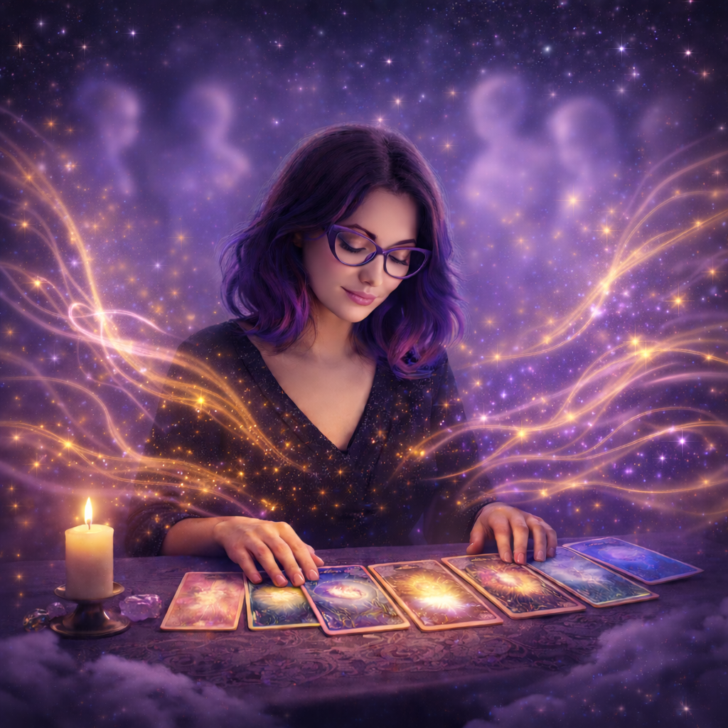 I connect with your energy and Spirit team, draw cards intuitively, and provide thoughtful interpretation paired with intuitive insight tailored to your situation.